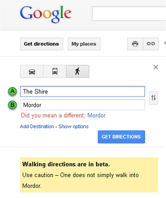 Go to Google Maps, get walking directions from “The Shire” to “Mordor” and you get a very good piece of practical advice.