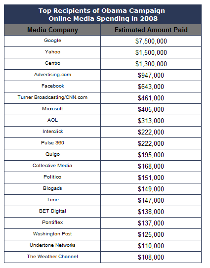 Compare that number with John McCain’s 2008 campaign, which spent about $3.6 million online.